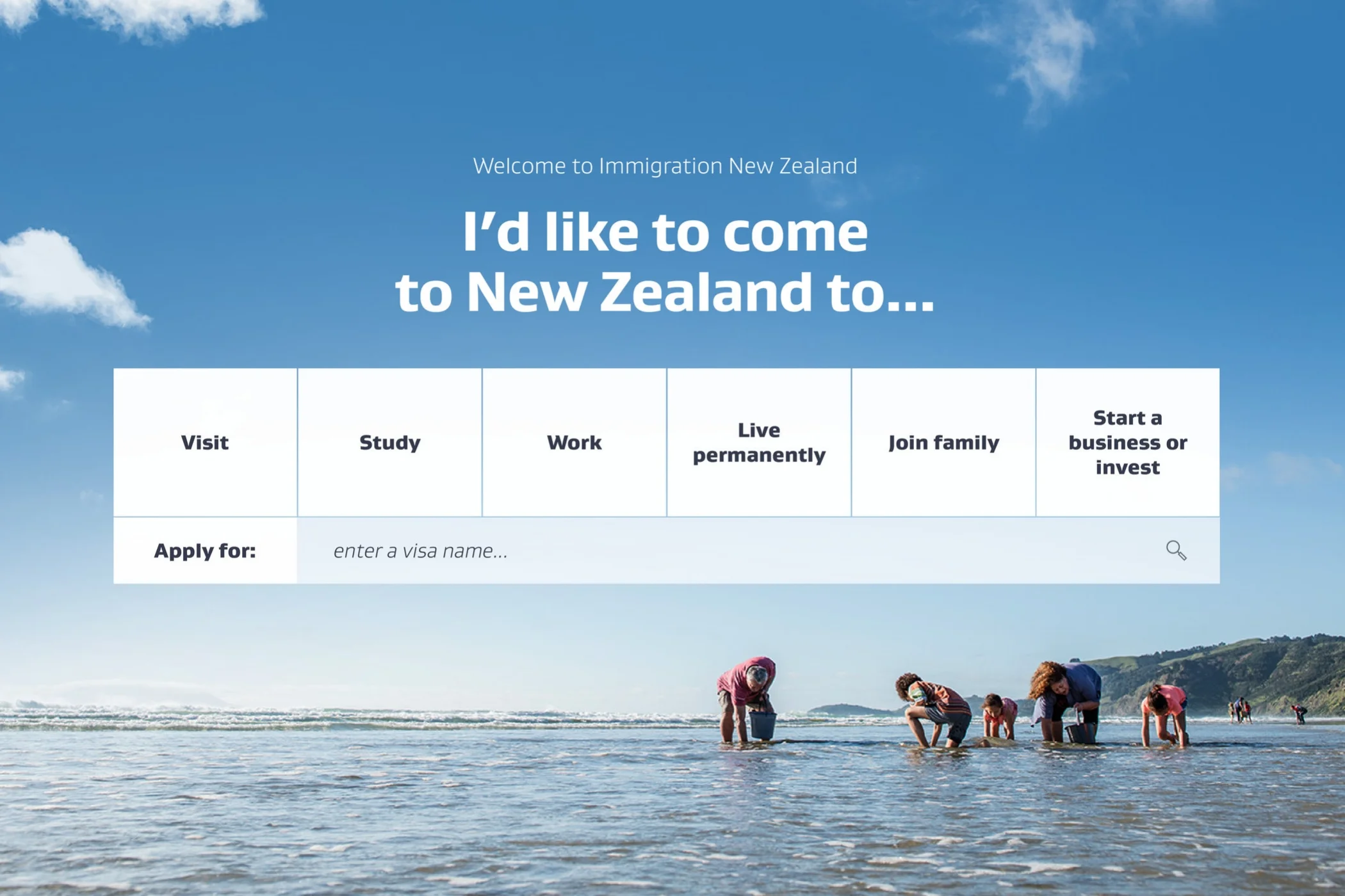 The new Immigration New Zealand (INZ) website has been completely redesigned to be customer centric and is built around six customer motivations: Visit, Study, Work, Live Permanently, Joining Family or Starting a Business. It has been built on the primary principles of clarity, reassurance and transparency. One of the key tenets of the design is to allow users to explore and compare options for both current and potential future situations. The challenge for the project team was to offer customers a range of experiences. It had to balance offering clear and credible information for customers going through a visa application while at the same time projecting aspirational and guiding aspects to customers looking to migrate for lifestyle reasons.